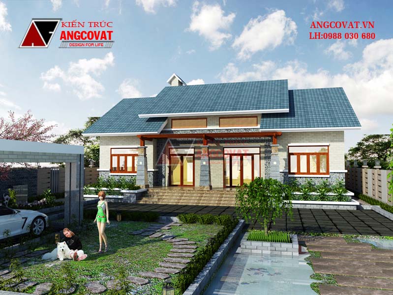 Thiết kế biệt thự nhà vườn cấp 4 4 phòng ngủ 160m2 mái thái có ngoại thất đẹp mê ly