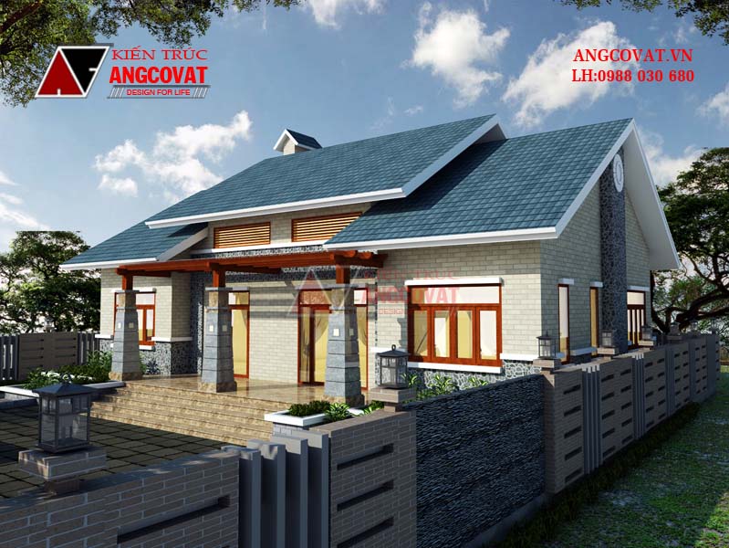Ngoài ra bạn có thể thấy mẫu thiết kế biệt thự nhà vườn cấp 4 này còn có phần mái rất lạ mắt, nếu như các thiết kế mái thái thường là mái liền nhưng trong thiết kế này bạn có thể thấy phần mái được chia ra làm 3 khối với 2 khối 2 bên thấp để làm nổi phần mái ở chính giữa của thiết kế nhà đẹp. Đây chính là điểm nhấn cũng như điểm tạo sự thu hút đối với các vị khách.
