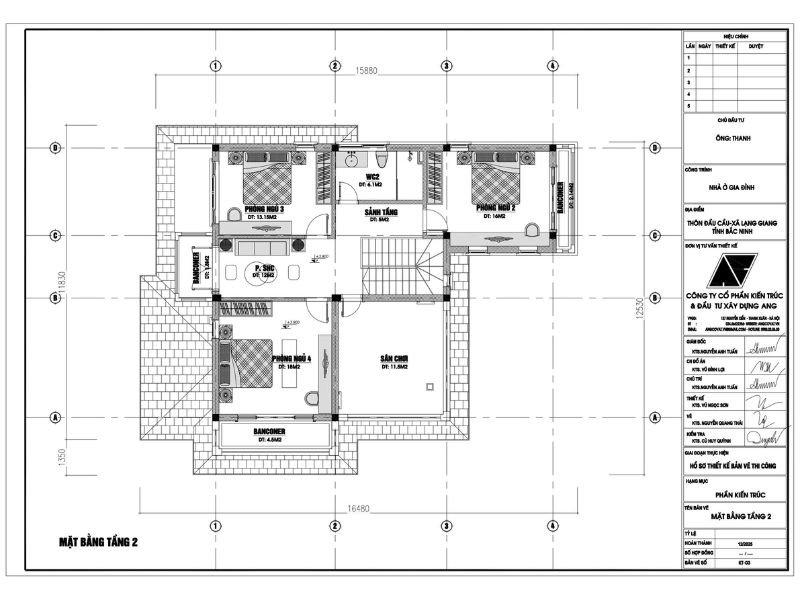 Mặt bằng khu vực tầng 2 căn biệt thự 2 tầng