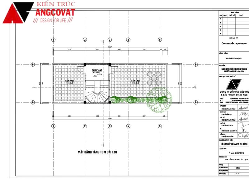 Bản vẽ thiết kế nhà 4x12m mặt bằng tầng tum