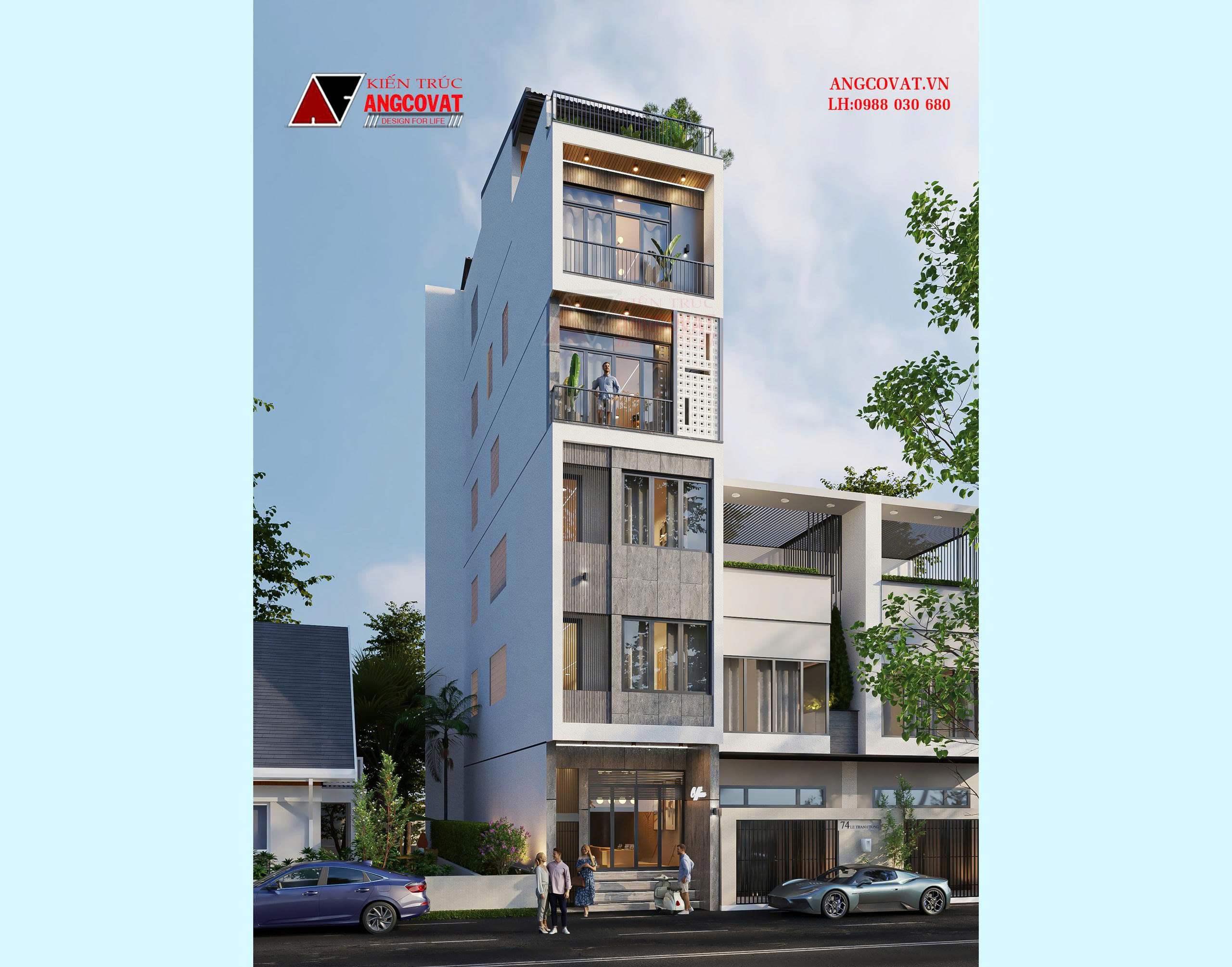 Kiến trúc thiết kế nhà phố 5 tầng 1 tum 4.5x16m2