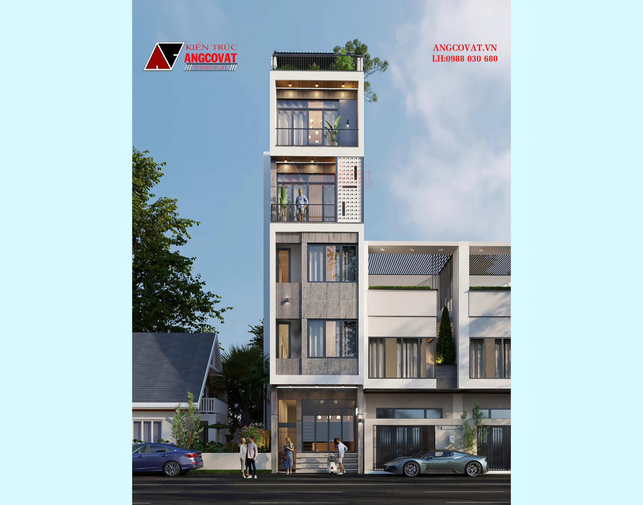 Mẫu thiết kế nhà phố(lô,ống) 5 tầng đẹp được Angcovat thiết kế với phong cách hiện đại, cổ điển sẽ biến căn nhà tương lai của bạn trở nên hoàn hảo hơn.