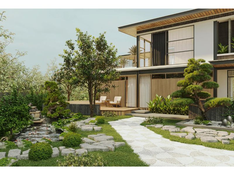 Xây dựng nhà vườn 4000m2 mái nhật sử dụng các hình khối, đường nét đơn giản, thanh thoát
